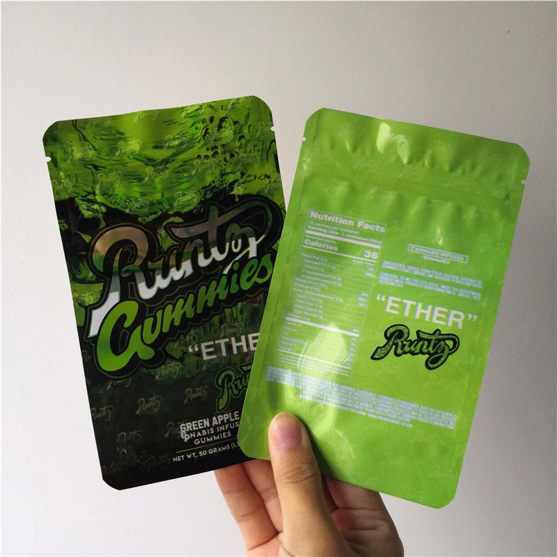 Ether Runtz Gummies Green Apple Flavor 500mg Empty Mylar Bags Loud Mylar Bags